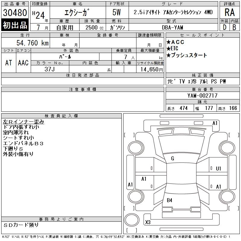 SUBARU EXIGA 2.5I EYESIGHT ALCANTA -4WD - лот 30480
