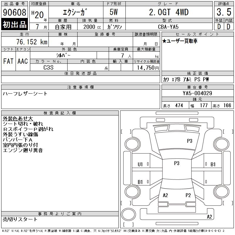 Все аукционы SUBARU EXIGA