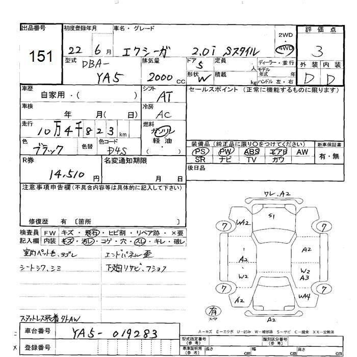 SUBARU EXIGA 4WD 2.0I S STYLE - лот 151