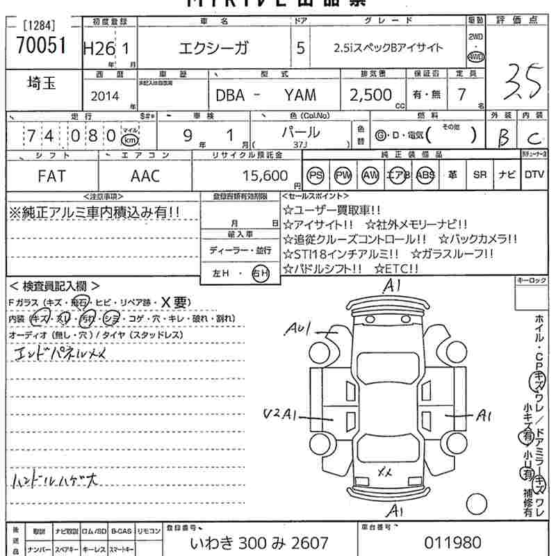 SUBARU EXIGA 2.5I SPECIFICATIONS B EYESIGHT - лот 70051