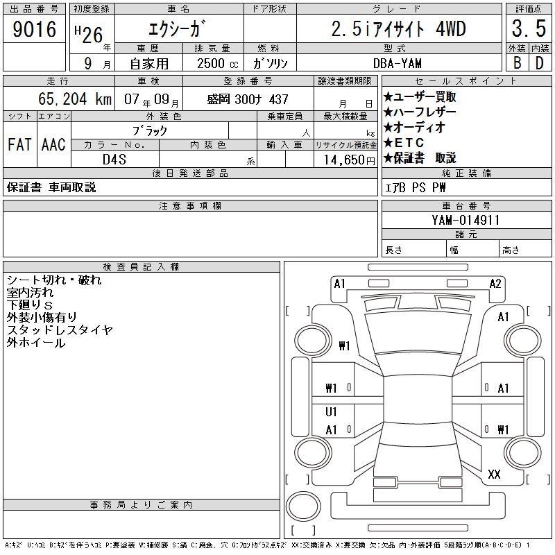 SUBARU EXIGA 2.5I EYESIGHT 4WD - лот 9016