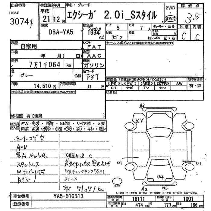 Все аукционы SUBARU EXIGA