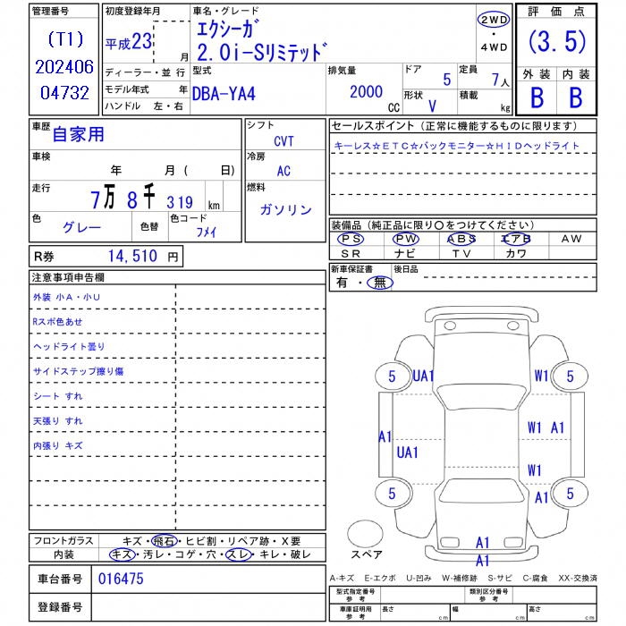 Все аукционы SUBARU EXIGA
