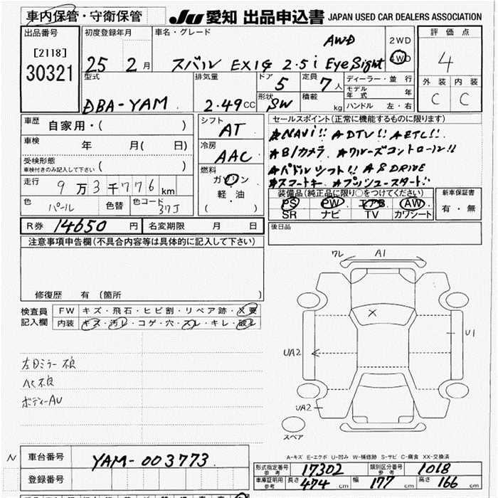 SUBARU EXIGA 2.5I EYESIGHT 4WD - лот 30321