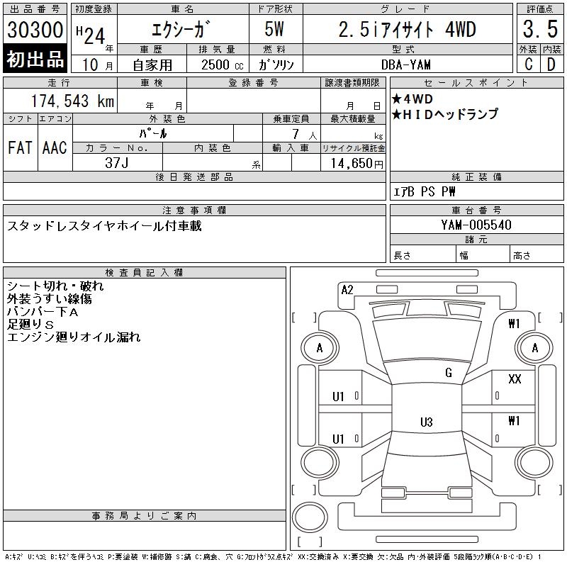 SUBARU EXIGA 2.5I EYESIGHT 4WD - лот 30300