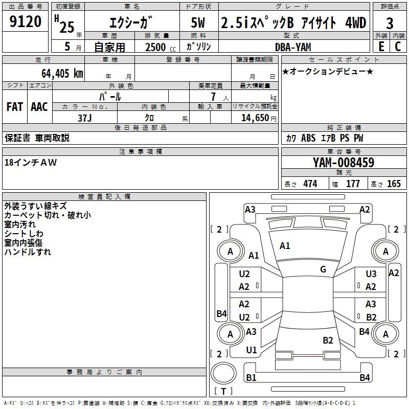SUBARU EXIGA 2.5I SPECIFICATIONS B EYESIGHT 4WD - лот 9120