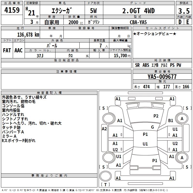 Все аукционы SUBARU EXIGA