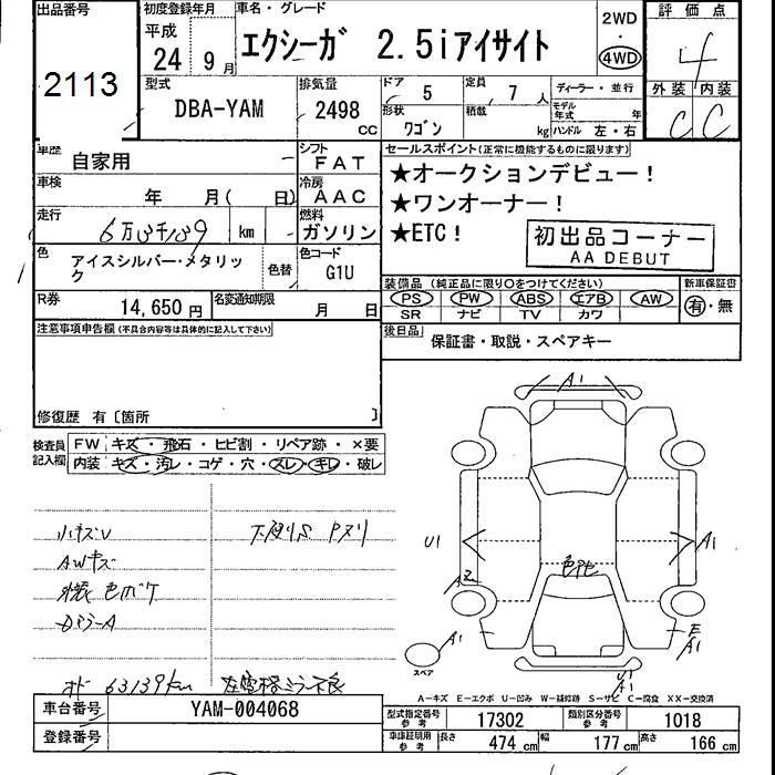 Все аукционы SUBARU EXIGA
