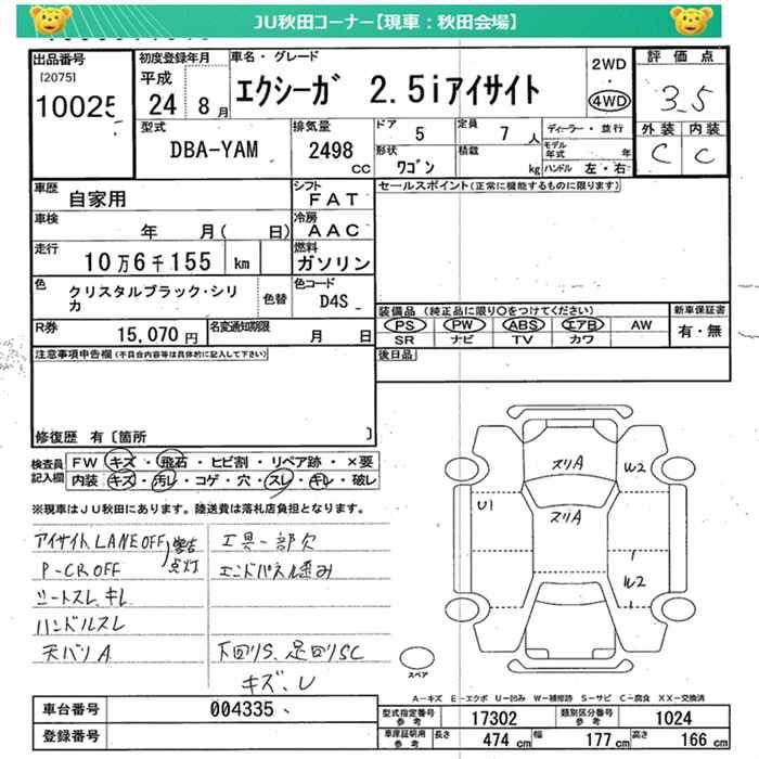 SUBARU EXIGA 4WD 2.5I EYESIGHT - лот 10025