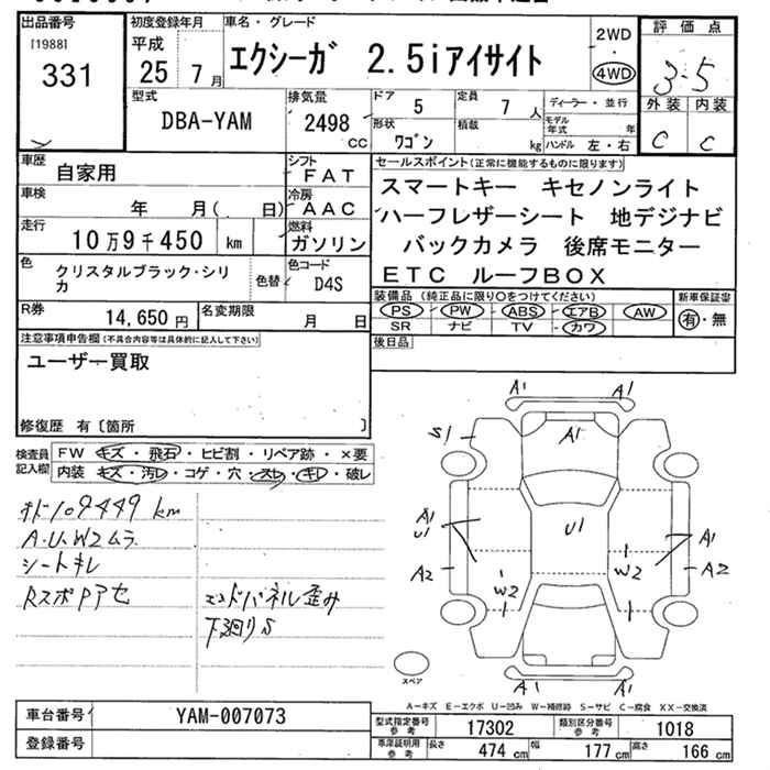 SUBARU EXIGA 4WD 2.5i EyeSight - лот 331