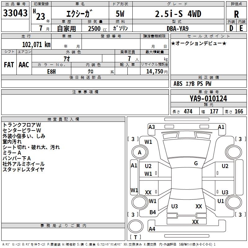 Все аукционы SUBARU EXIGA
