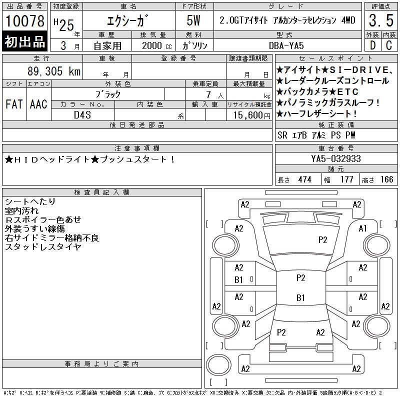SUBARU EXIGA 2.0GT EYESIGHT ALCANTA 4WD - лот 10078
