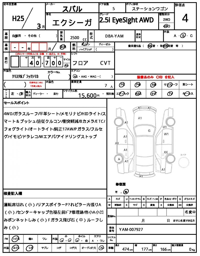 Все аукционы SUBARU EXIGA