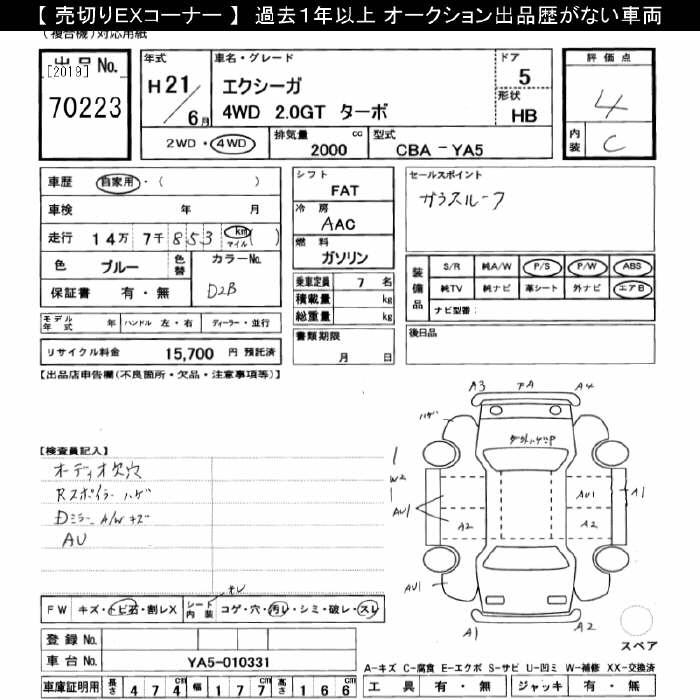 SUBARU EXIGA 4WD 2.0GT TURBO - лот 70223