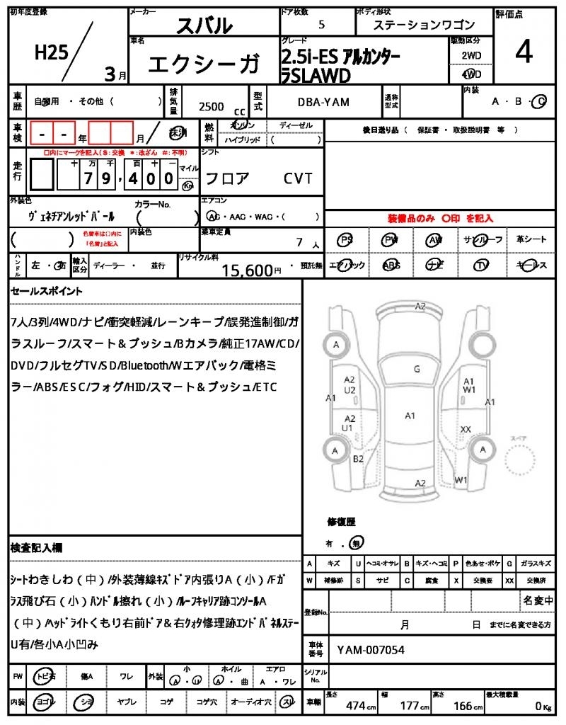 Все аукционы SUBARU EXIGA