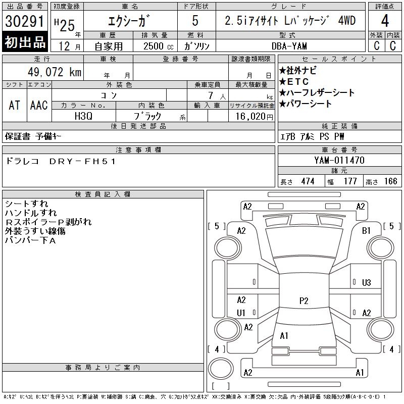 SUBARU EXIGA - лот 30291