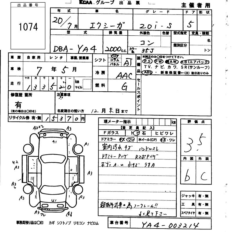 SUBARU EXIGA - лот 1074