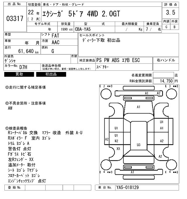 SUBARU EXIGA - лот 3317