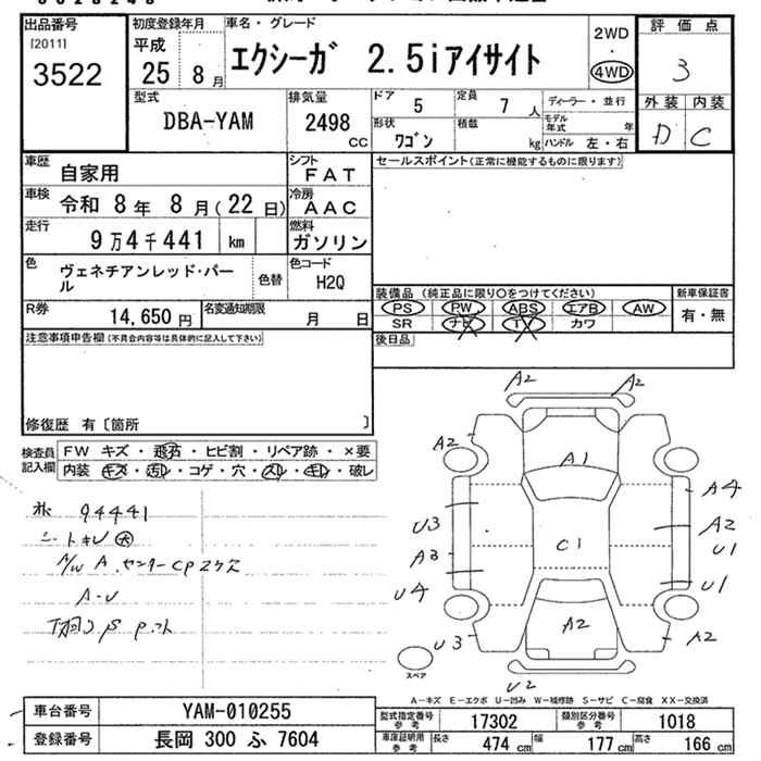 SUBARU EXIGA - лот 3522