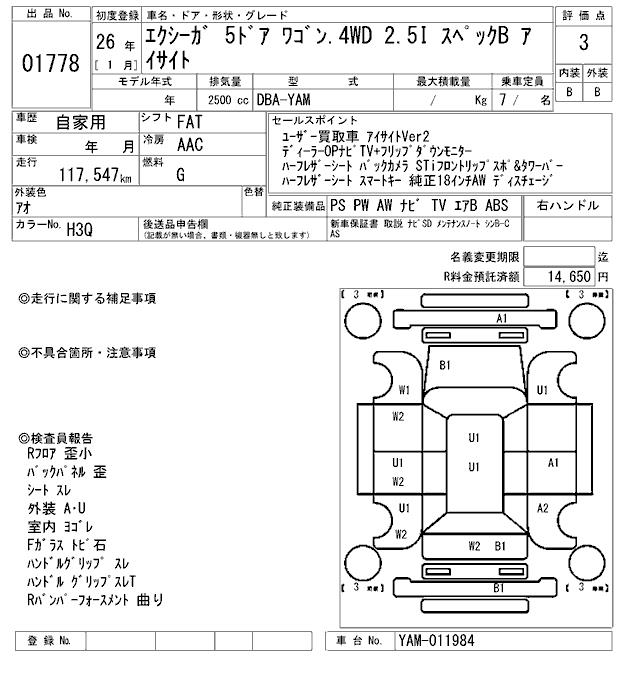 SUBARU EXIGA - лот 1778