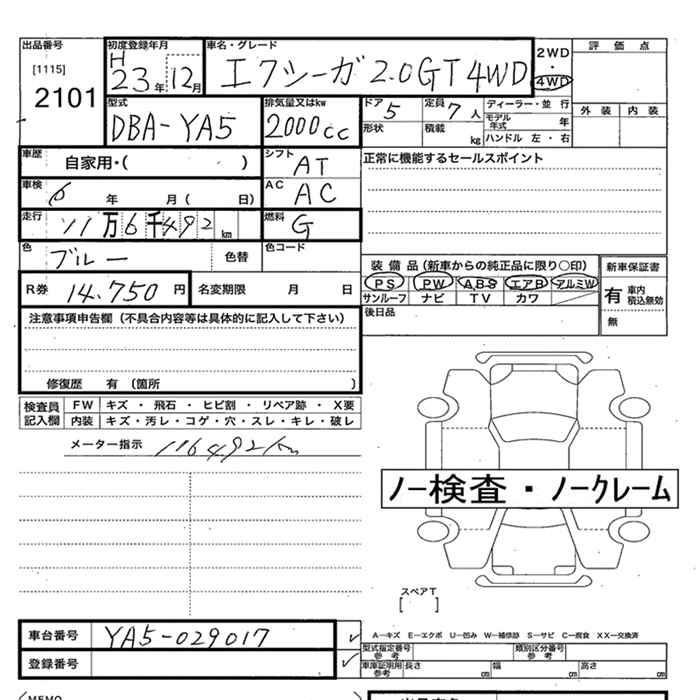 SUBARU EXIGA - лот 2101