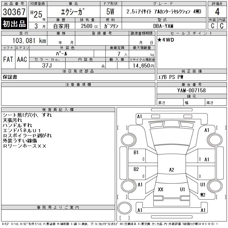 SUBARU EXIGA - лот 30367