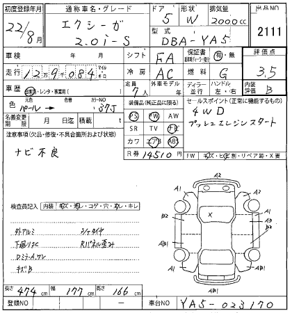SUBARU EXIGA - лот 2111