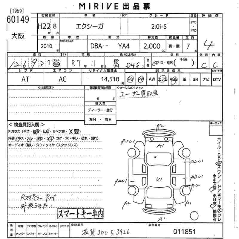 SUBARU EXIGA - лот 60149