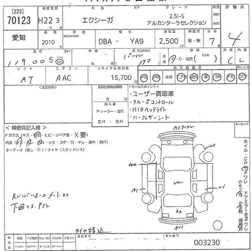 SUBARU EXIGA - лот 70123