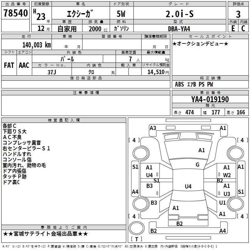 SUBARU EXIGA - лот 78540