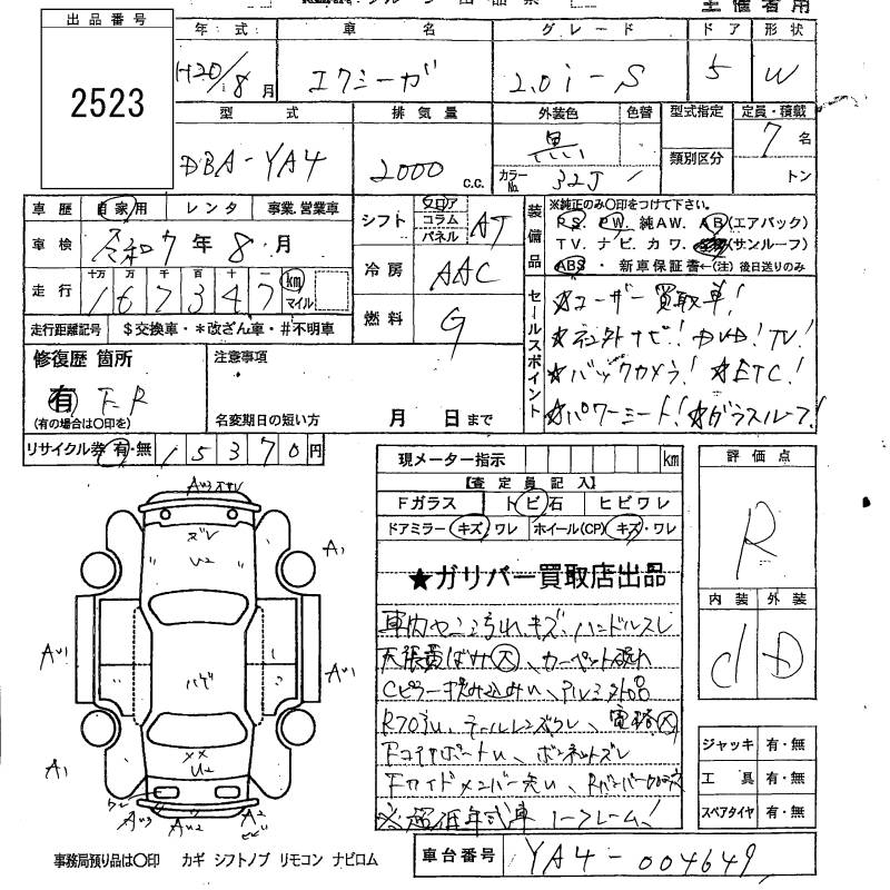 SUBARU EXIGA - лот 2523