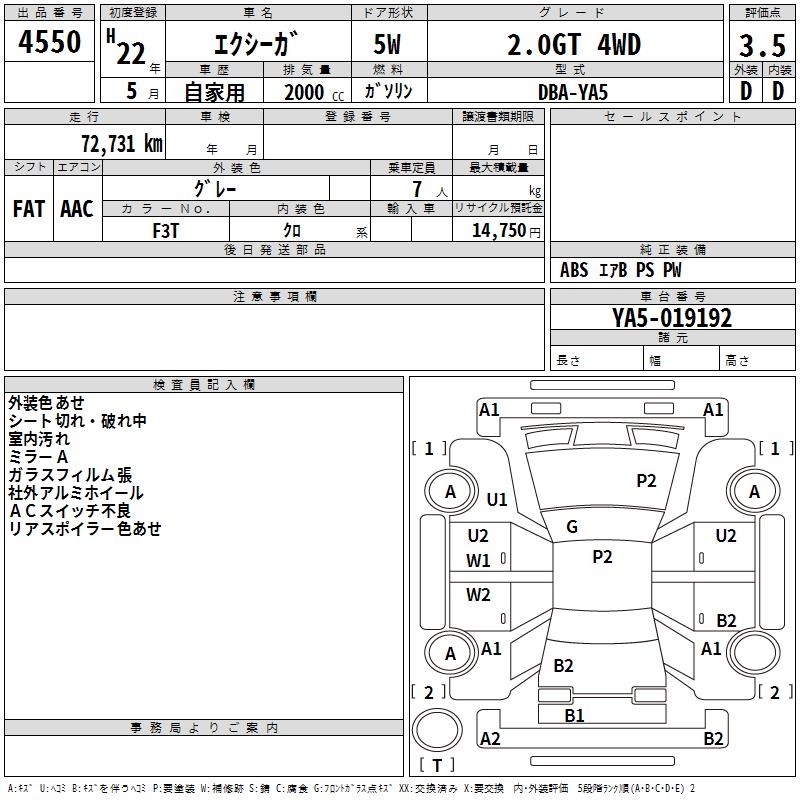 SUBARU EXIGA - лот 4550