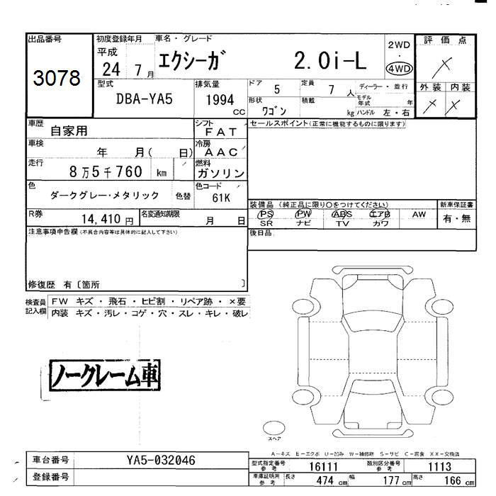 SUBARU EXIGA - лот 3078