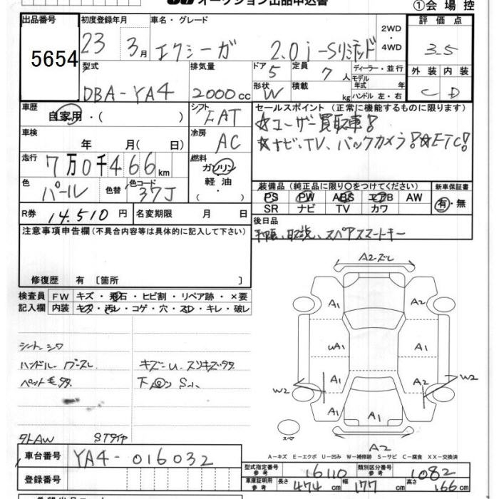 SUBARU EXIGA - лот 5654
