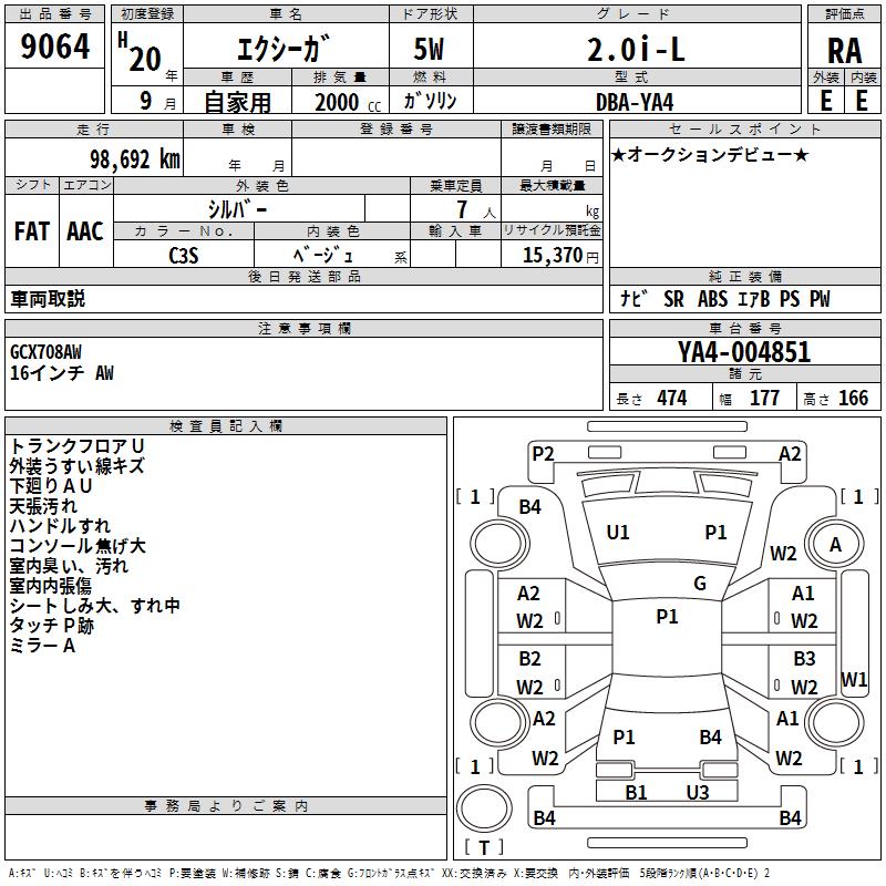SUBARU EXIGA - лот 9064