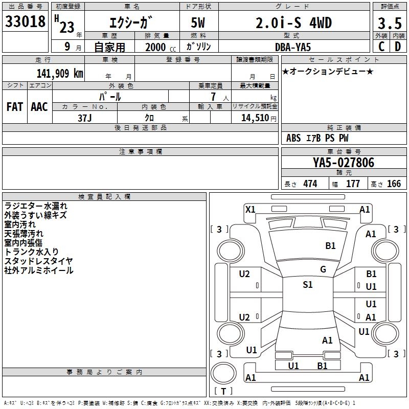 SUBARU EXIGA - лот 33018