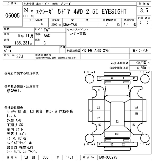 SUBARU EXIGA - лот 6005