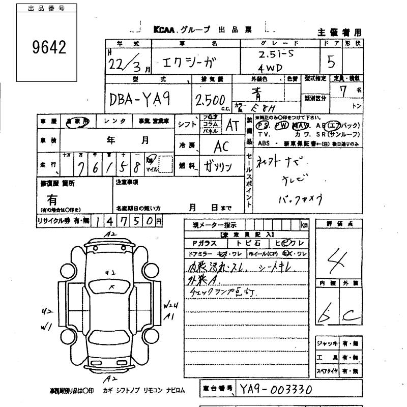 SUBARU EXIGA 2.5i-S 4WD - лот 9642