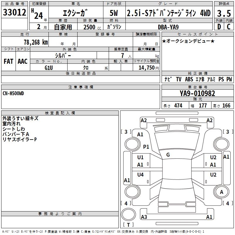 SUBARU EXIGA 2.5I-SADO VANTAGE 4WD - лот 33012