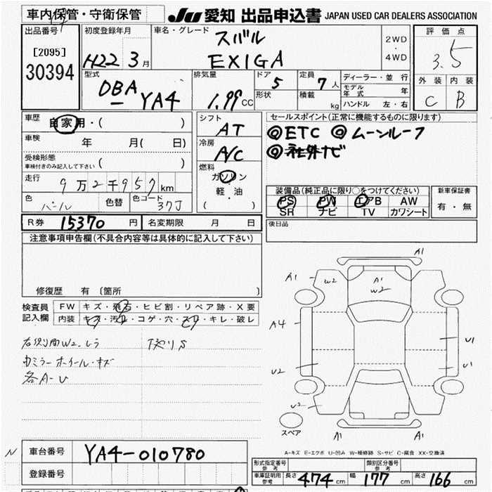 SUBARU EXIGA - лот 30394