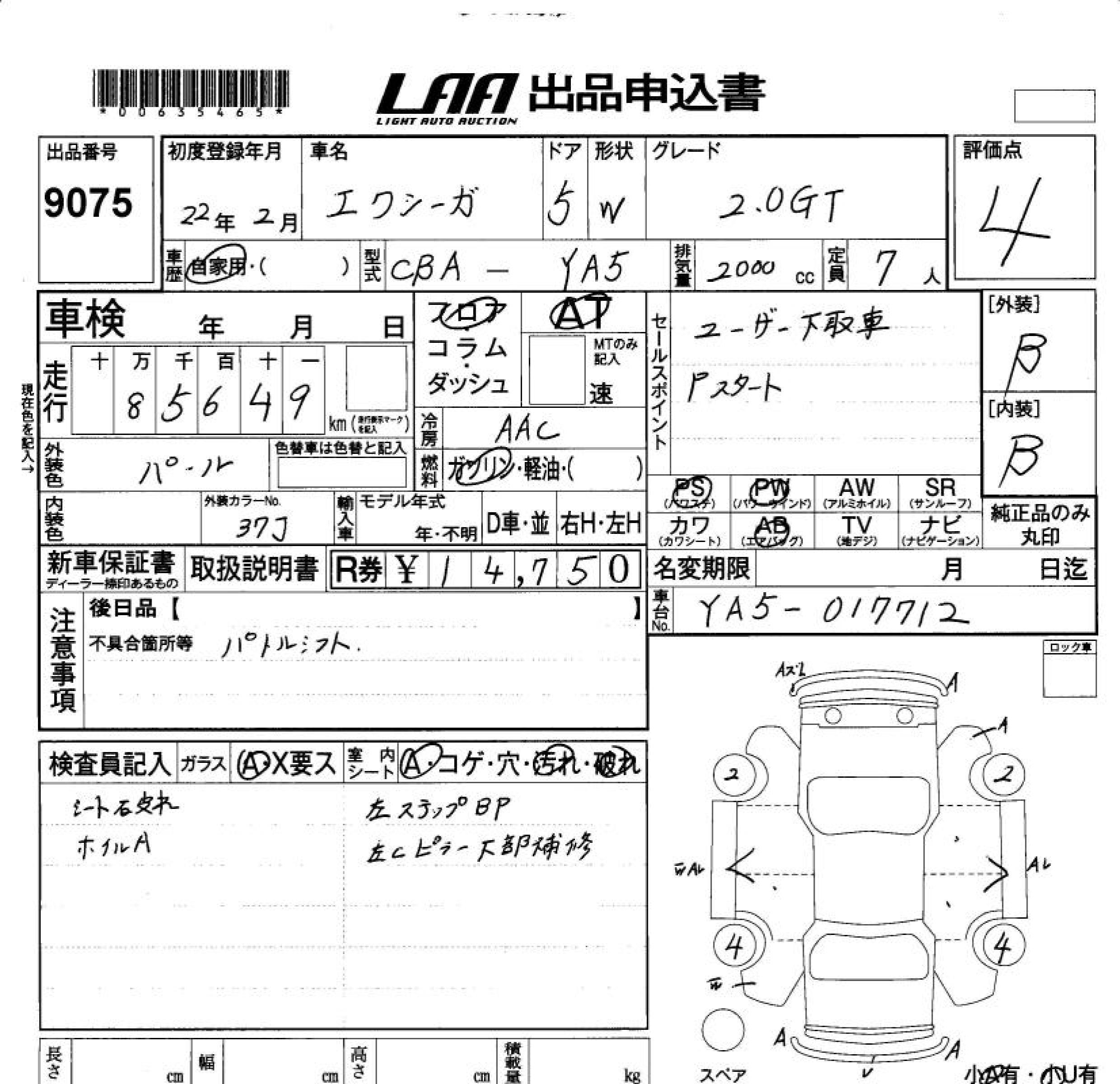 SUBARU EXIGA 2.0GT - лот 9075