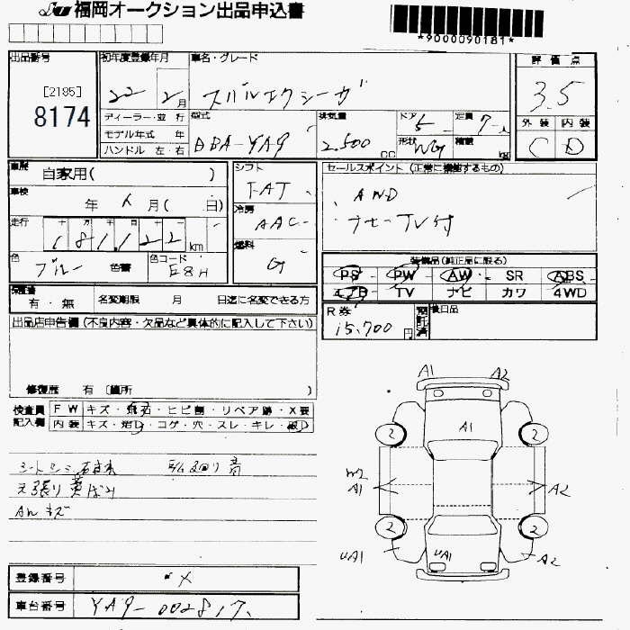 SUBARU EXIGA - лот 8174