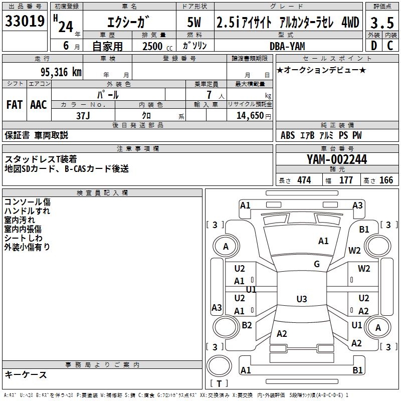 SUBARU EXIGA 2.5I EYESIGHT ALCANTA -4WD - лот 33019
