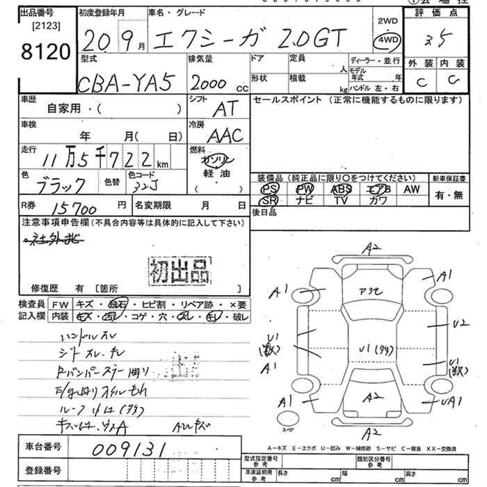 SUBARU EXIGA 4WD 2.0GT - лот 8120