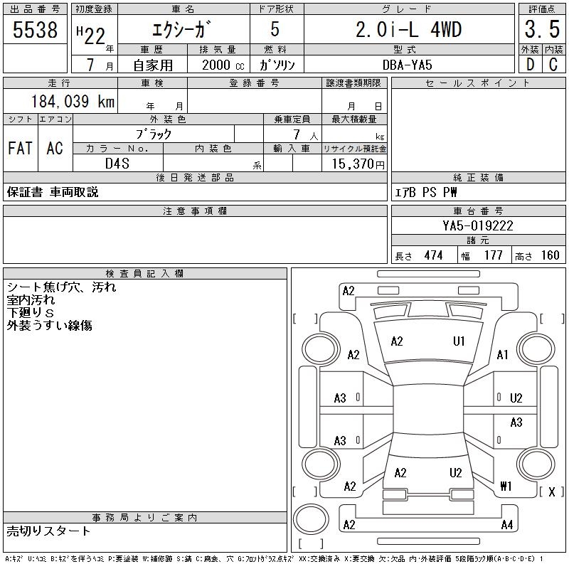 Все аукционы SUBARU EXIGA