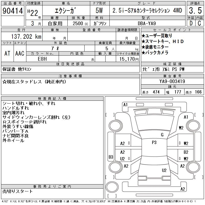 SUBARU EXIGA 2.5I-S ALCANTARA SELECT 4WD - лот 90414