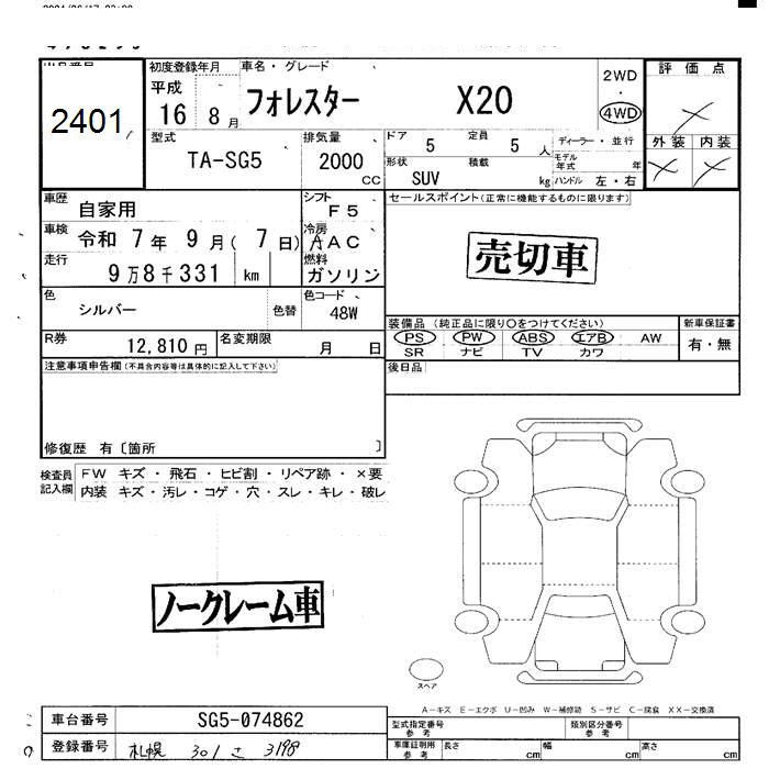 SUBARU FORESTER X20 - лот 2401