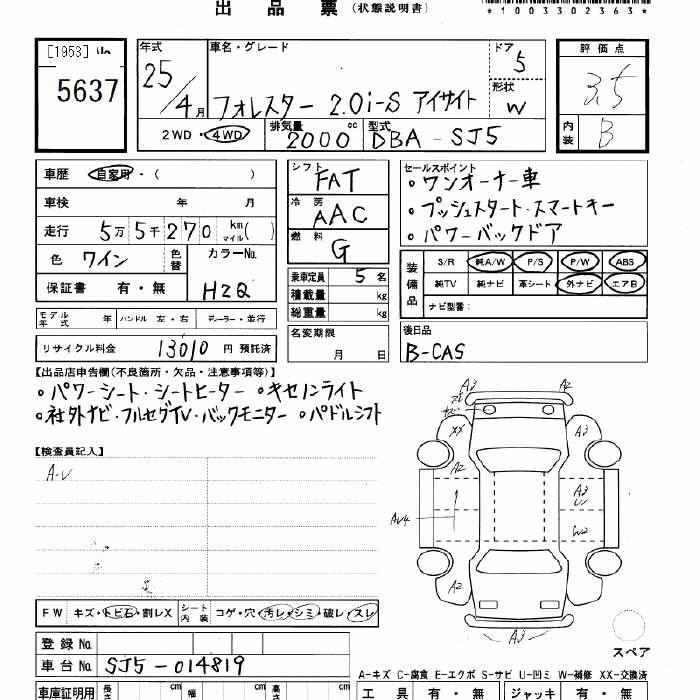 SUBARU FORESTER 4WD 2.0i-S EyeSight - лот 5637
