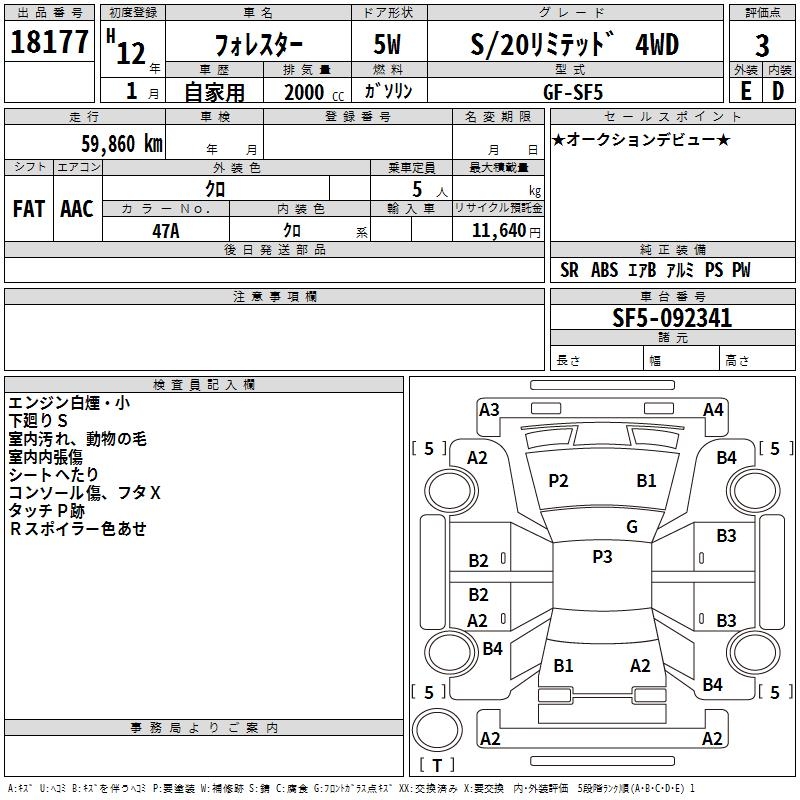 SUBARU FORESTER S/20 limited 4WD - лот 18177