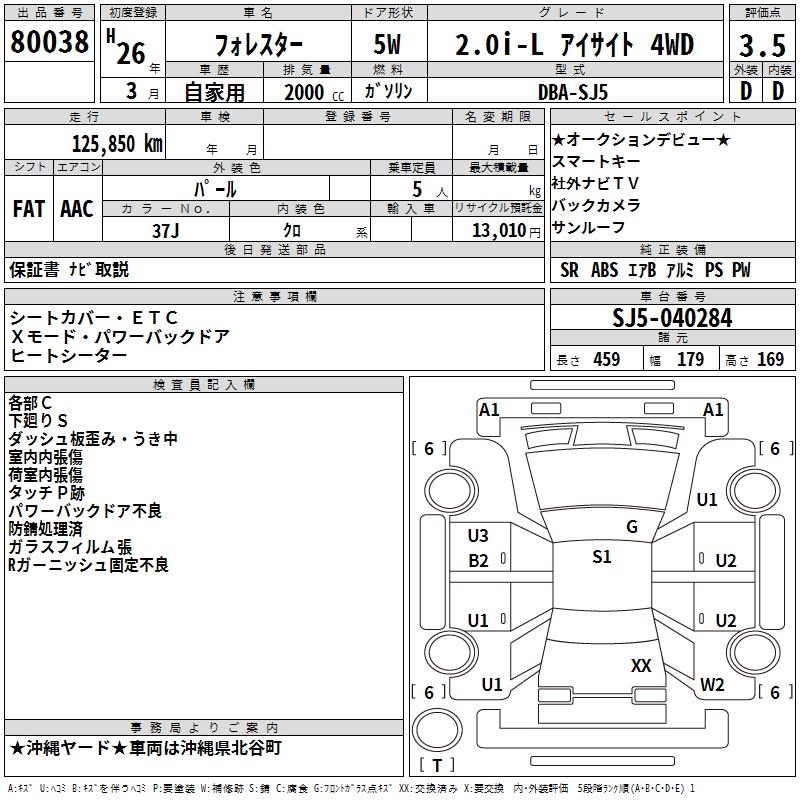 SUBARU FORESTER 2.0i-L EyeSight 4WD - лот 80038